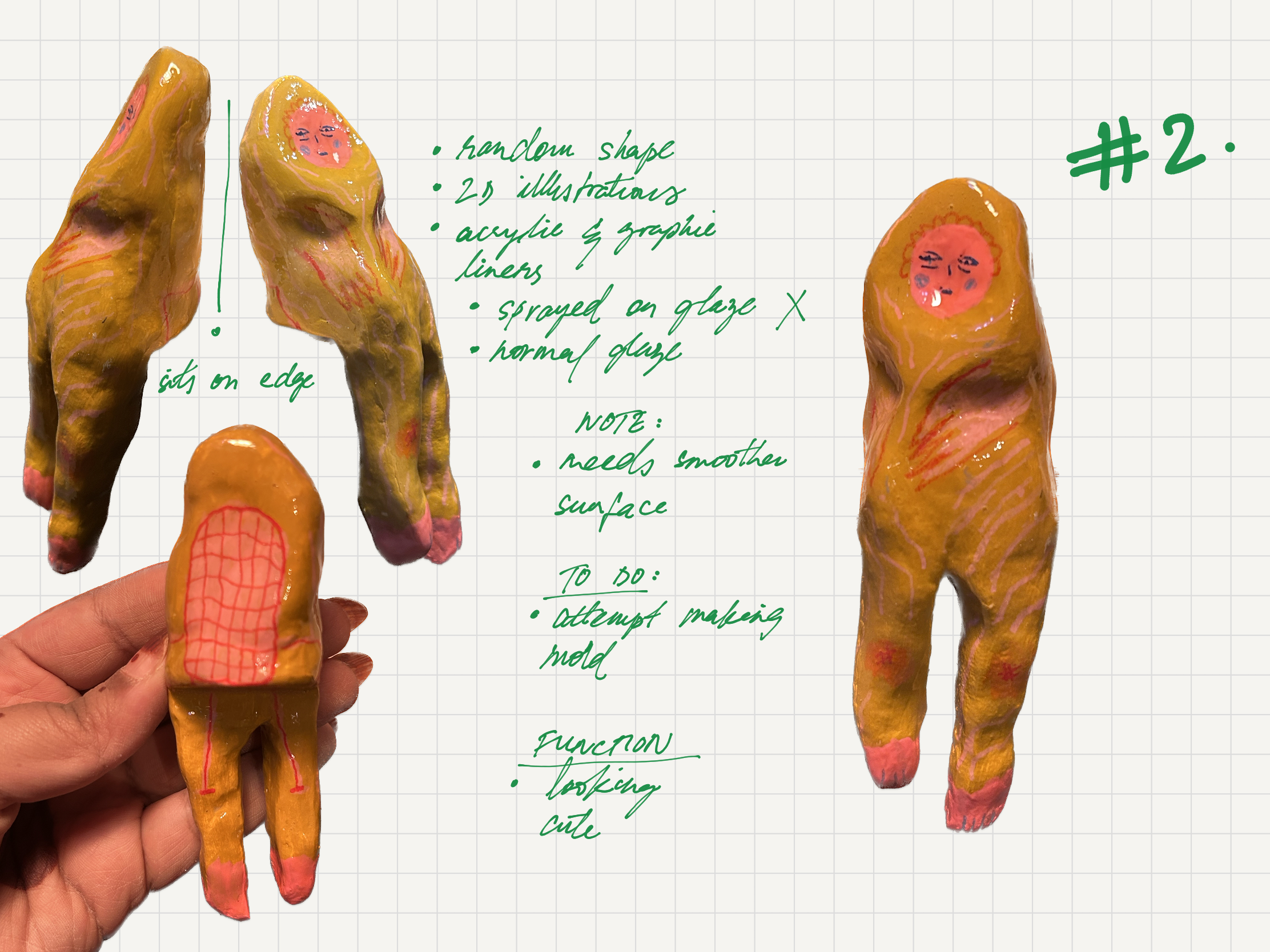 لطالما أردت صنع ألعاب صغيرة باستخدام الطين وتلوينها بأسلوبي. أحب هذه الألعاب للغاية. أخطط صنعها لتستخدم كساندة كتب أو أكواب شاي ليستطيع الناس استخدامها وشرائها. أنا في إستوديو الريشة حاليًا. أجتمع مع بقية أعضاء الإستوديو لنعمل ونقيم جلسات للعصف الذهني. أهم هدف حالياً هو ابتكار أشياء قابلًا للشراء إذا أردت أن أستمر بالعمل على مبادرة حِجرة • ورقة • مقص.